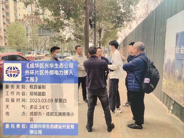2023年3月9日造价合约部、策划部、设计及造价咨询编制单位陪同区评审中心、评审单位对外环片区外部电力接入工程进行初设概算现场踏勘。(造价合约部喻文静)