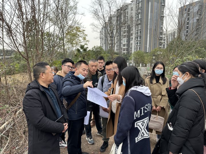 2023年2月28日造价合约部、策划部、勘察、设计、基坑支护及造价咨询单位陪同区评审中心、评审单位对一里塘(石岭)新增地块项目进行初设概算现场踏勘。(造价合约部喻文静)