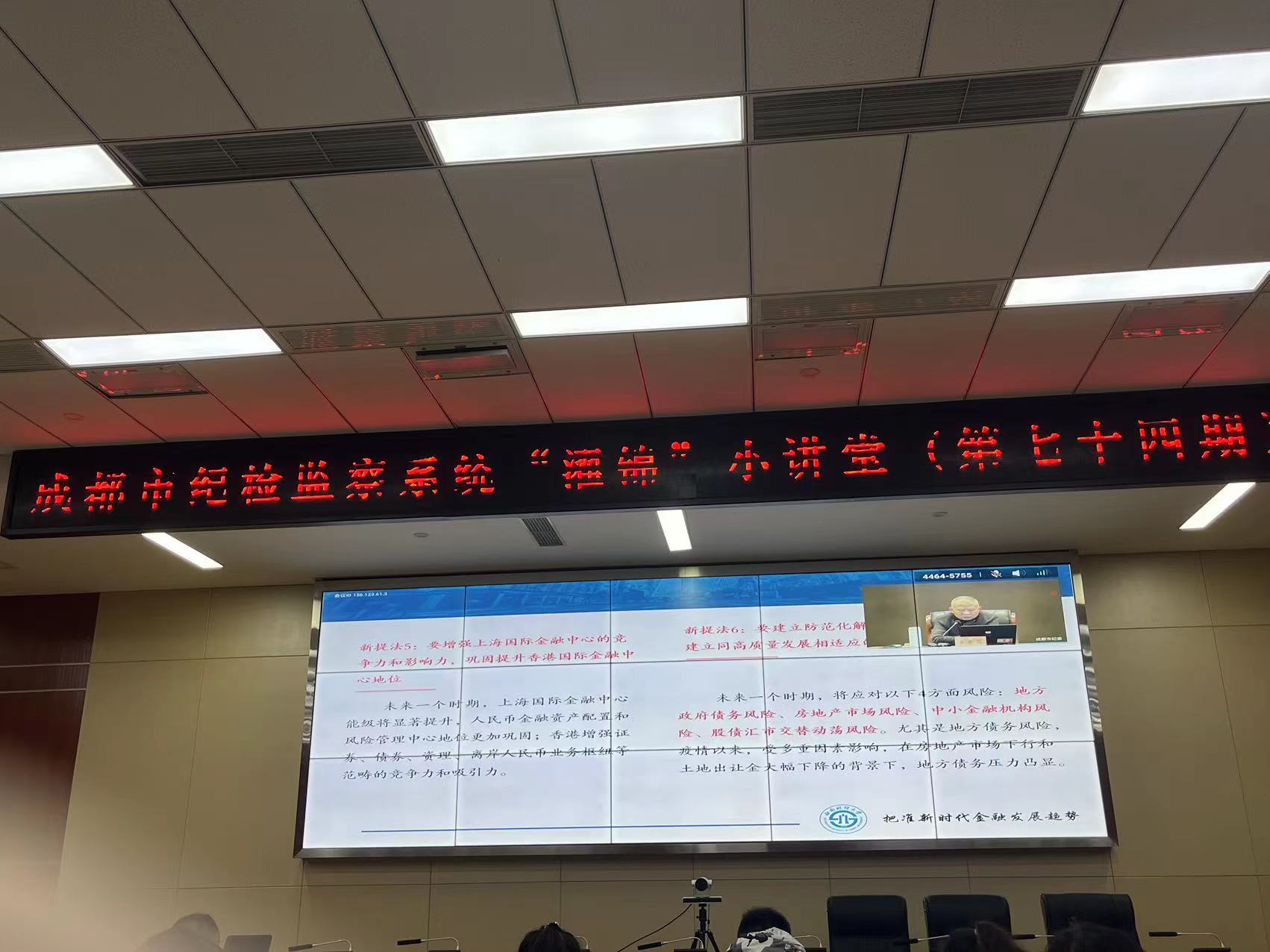 此次活动,来自西南财经大学金融学院的曾志耕教授深入透析了中央金融工作会议精髓,帮助纪检干部深刻领悟习近平总书记在中央金融工作会议上的重要讲话,强化使命担当,锚定金融强国建设目标,推动金融高质量发展,助力强国建设、民族复兴伟业。