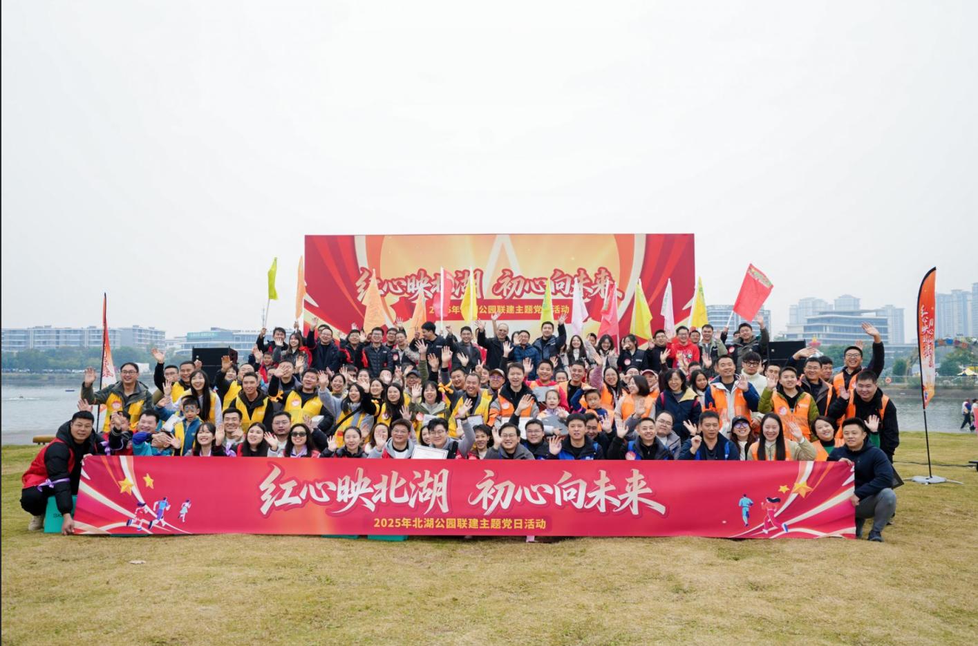 11月22日上午,一场别开生面的“红心映北湖·初心向未来”主题党日活动在北湖生态公园举行。此次活动由成华区委组织部指导,区国资局、熊猫度假区管委会主办,兴华生态公司承办,由区委社工部、龙潭街道、成华发展集团等13个党组织联合开展,共计120余名党员干部参加,以寓教于乐的方式,拓展基层党建形式。